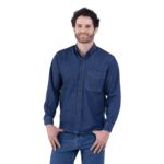 100% Algodón - Camisa-Trabajo-Mezclilla-Manga-Larga-Hombre - Lavado en casa - Cuello con botones - Mezclilla de 8 oz, lavada con enzimas- bolsillo en el pecho